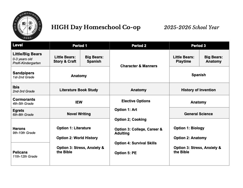 HIGH Day (“Hearts in God’s Hands”) is an Orlando Christian homeschool co-op which enables families to experience great relationships and enriching activities during the school year. We have approximately 30 families with class sizes typically under 12 kids per class.